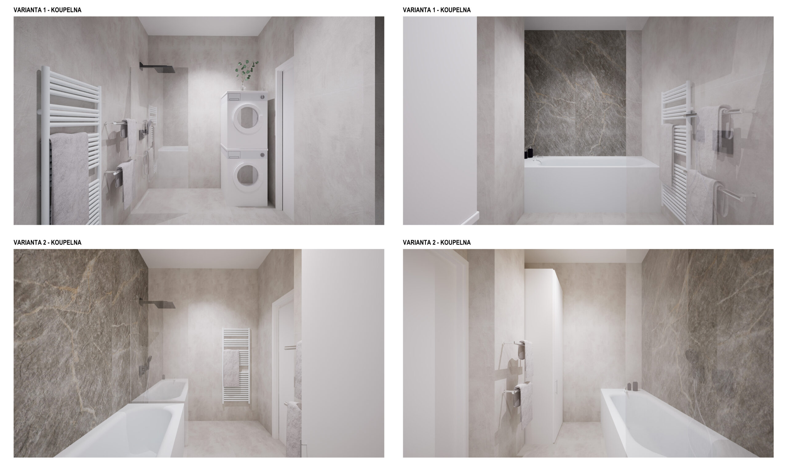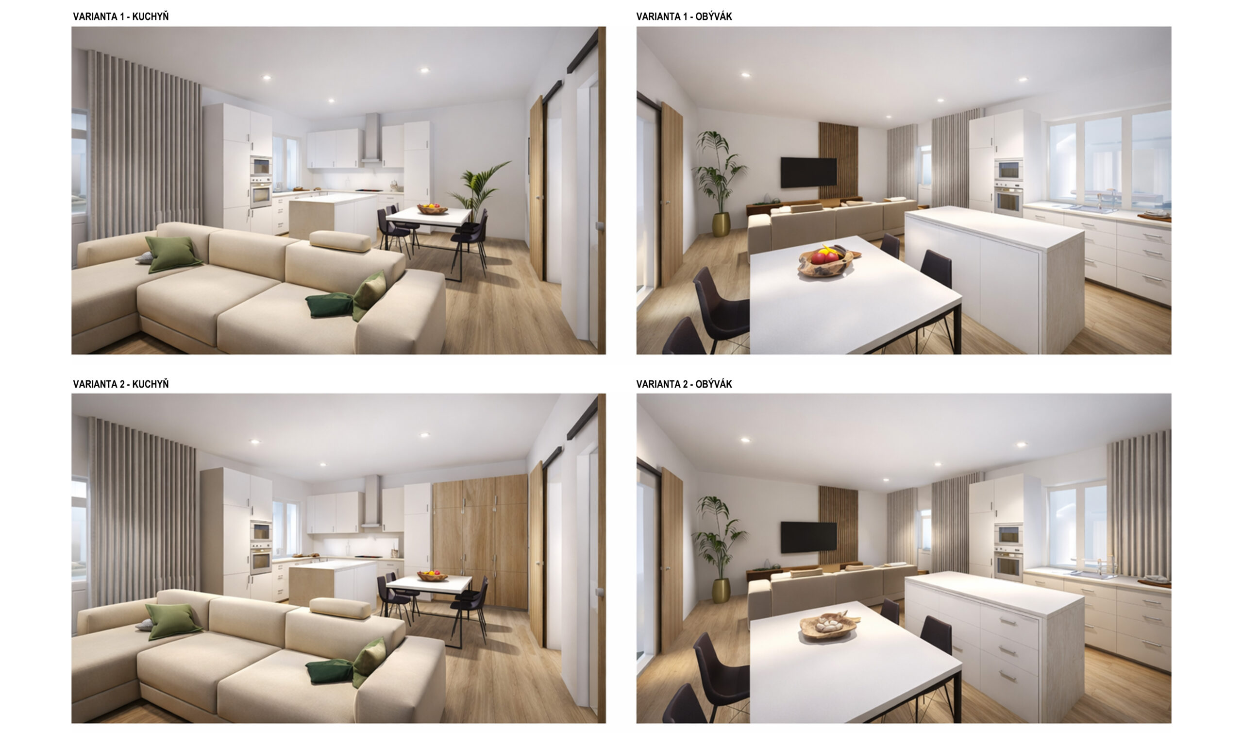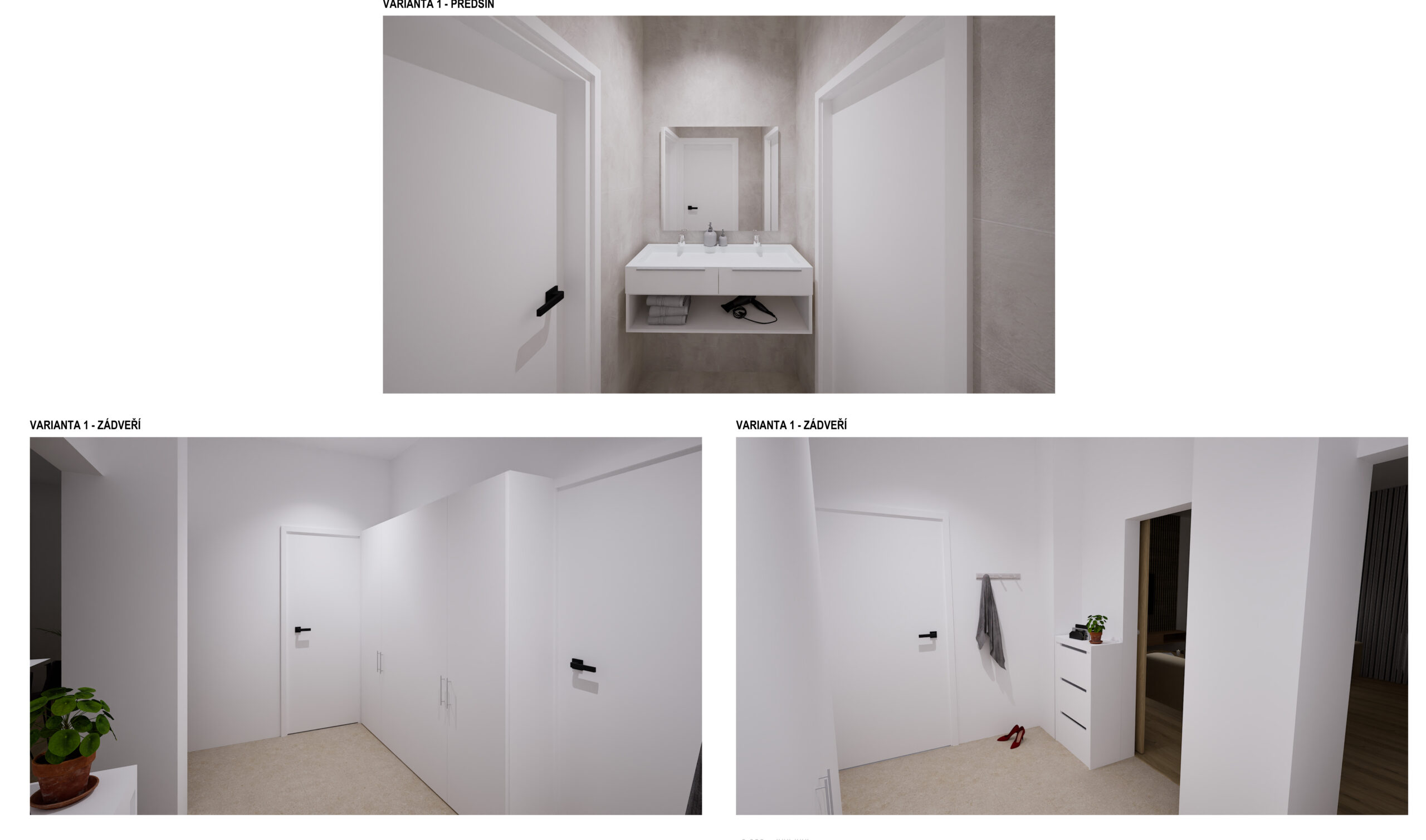 Návrh úplné změny dispozice bytu, zpracování několika variant pro zjištění nejideálnější verze a koncepční návrh interiéru.